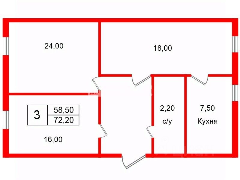 Комнаты изолированы: 16,36 м2, 24,11 м2, 18,03 м2. Кухня 7 м2. Потолки три метра. Из коридора три двери — вход в каждую комнату отдельно. Квартира двухсторонняя, с хорошей вентиляцией. В одной из комнат установлен рекуператор воздуха.