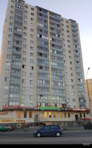 13 этаж 17-этажного дома, общая площадь 43,5 кв.м + 2 застеклённые лоджии 3,9+2,7кв.м. Комната 18,2, кухня 11,2, с/у совмещенный 4,1, коридор 7,3, кладовая 2,7. Высота потолков: 2.7 м. 2 лифта.