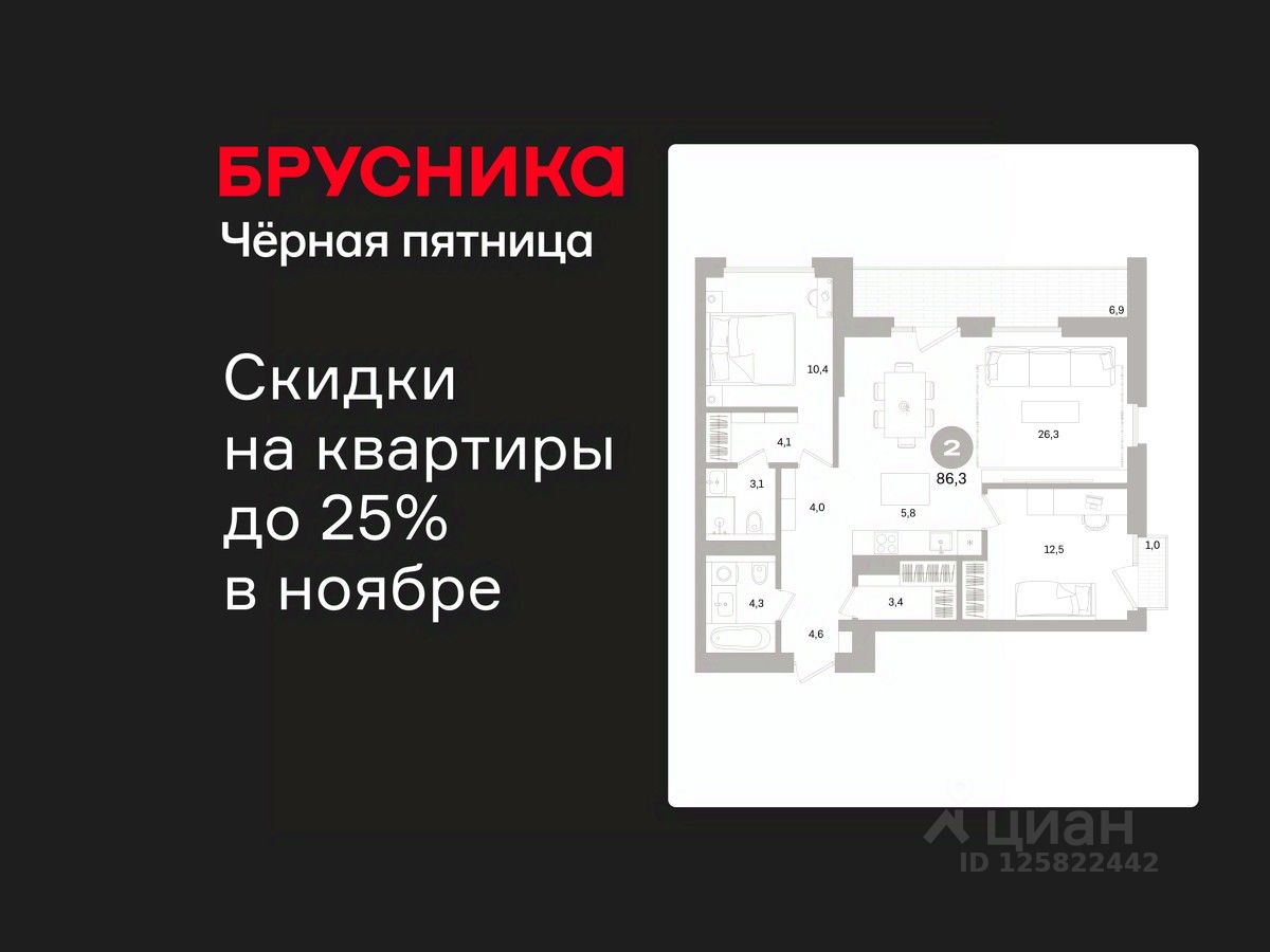 Просторная двухкомнатная квартира с предчистовой отделкой в ЖК "Северный ветер" на 6 этаже. Общая площадь: 86.26 кв.м., жилая: 22.9 кв.м., площадь просторной кухни-столовой: 32.1 кв.м. Квартира угловая, очень светлая, естественная вентиляция при открытии окон. В квартире одна лоджия, два совмещенных санузла. Высота потолков 3.1 м.
