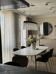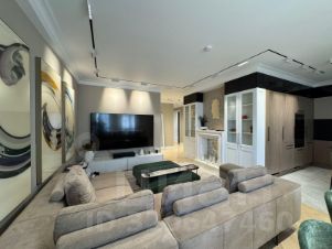 В предлагаемых к продаже эксклюзивных апартаментах удобная современная функциональная планировка, продуманная до мелочей: кухня-гостиная площадью 41.4 кв.м., комната 19.8 кв.м., комната 13.8 кв.м., коридор 12.8 кв.м., две гардеробных, два совмещенных санузла. Апартаменты оборудованы современной мебелью, техникой и освещением от ведущих итальянских производителей: Alf Italia Home, Vintage Italia, Cattelan Italia, а также BoConcept Danish, соответствующим всем современным тенденциям и стандартам. Люстры из натурального хрусталя, пол кухни Porcelanosa, пол в других зонах выполнен из дубового паркета. Материалы, мебель и оборудование были доставлены непосредственно с фабрик производителя под специальный заказ.