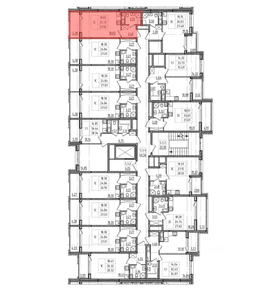 - Общая площадь - 25,73 кв.м без учета лоджии
