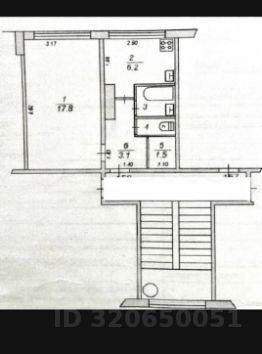Квартира общей площади S=32,2 м2, жил. S=17,8 м2, кухня S=6,2 м2, высота потолков 2,7.