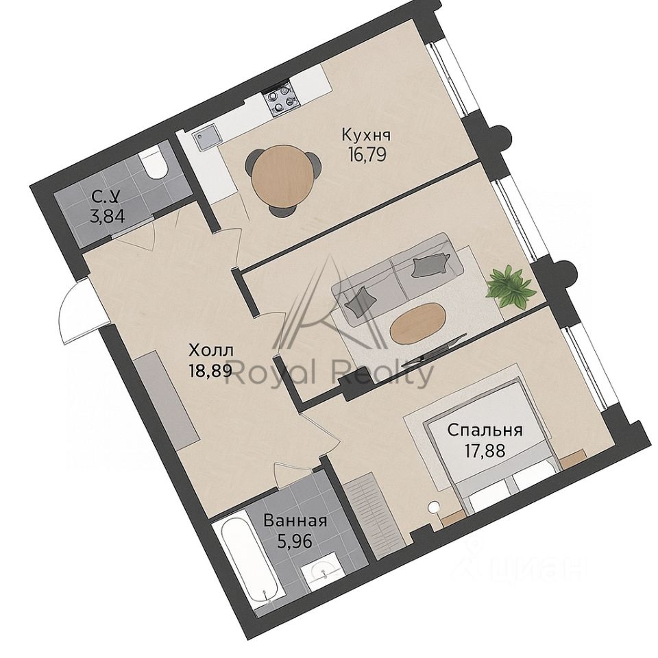 Функциональная планировка предполагает большую кухню для семейных ужинов и приема гостей, две уютные спальни по 18 кв.м каждая, два полноценных санузла и просторную прихожую — всё для комфортной и гармоничной жизни. Большие окна наполняют пространство естественным светом, а качественная инженерия гарантирует надежность и удобство в повседневности.