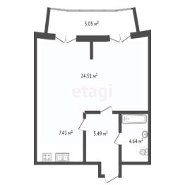 1ккв 41.8м2 + 4.95м2 утепленная лоджия!