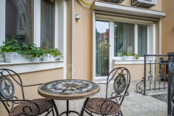 На 1 этаже гостиная со вторым светом 30,5 м (6 метровые потолки), кухня- столовая 30,8 м, кабинет и выход на уютную террасу, которая находится во внутреннем закрытом, озелененном дворе дома.