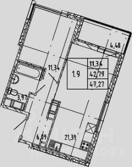 Продаётся просторная и светлая квартира формата евро-двушка площадью 42,7 м².