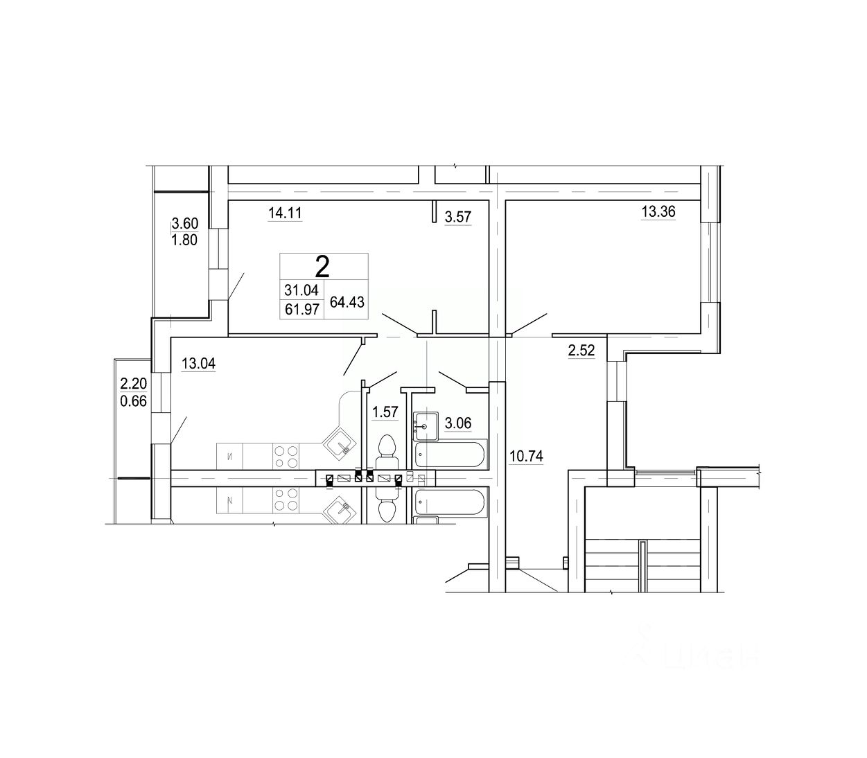 Продаётся 2-комнатная квартира в сданном доме (Корпус 1), срок сдачи: III-кв. 2024, общей площадью 64.43 кв.м., на 3 этаже. Новый жилой дом от застройщика "Промстроймонтаж" расположен по адресу: Россия, Ленинградская область, Гатчинский район, Коммунар, улица Строителей