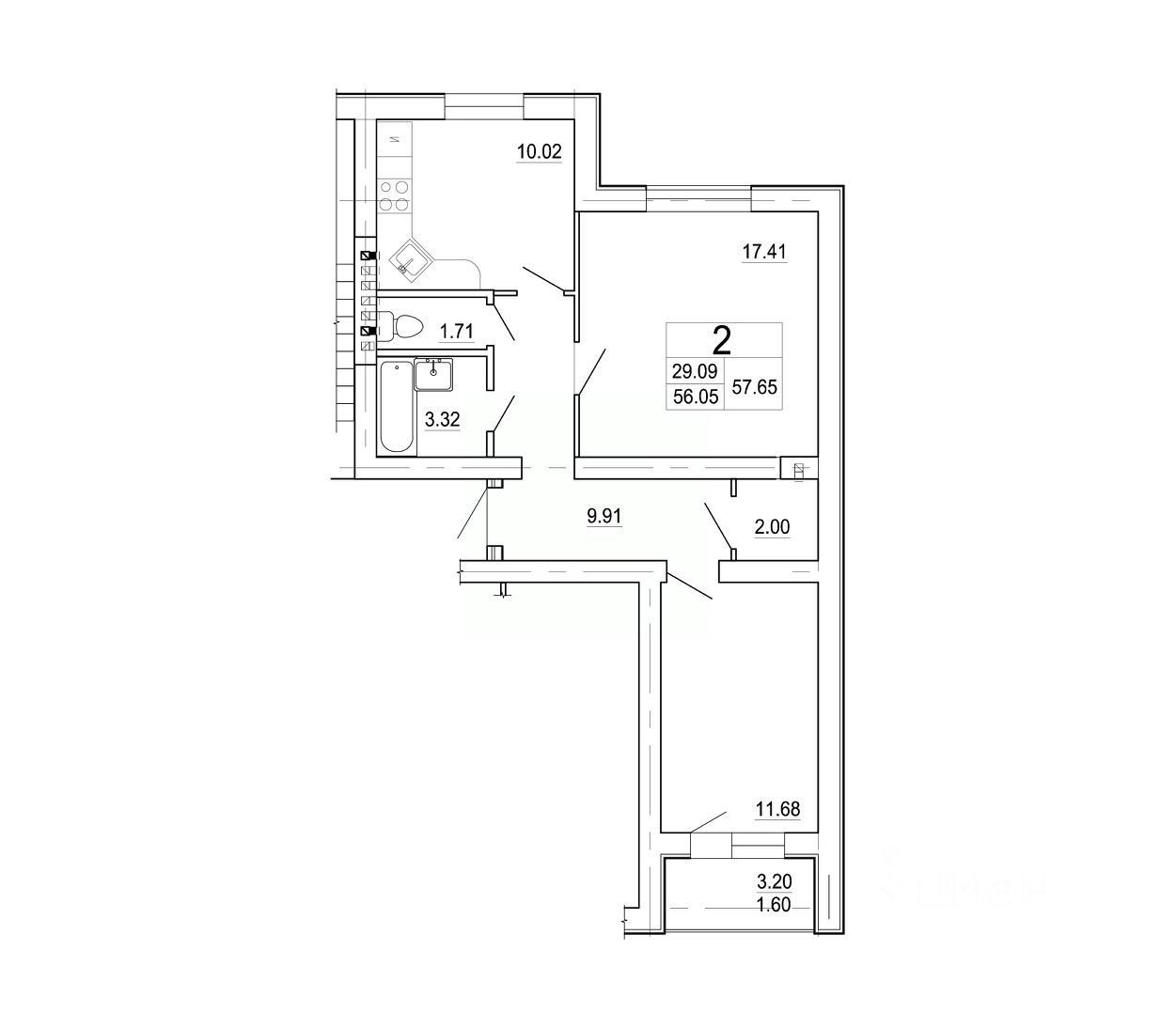 Продаётся 2-комнатная квартира в сданном доме (Корпус 1), срок сдачи: III-кв. 2024, общей площадью 57.65 кв.м., на 3 этаже. Новый жилой дом от застройщика "Промстроймонтаж" расположен по адресу: Россия, Ленинградская область, Гатчинский район, Коммунар, улица Строителей