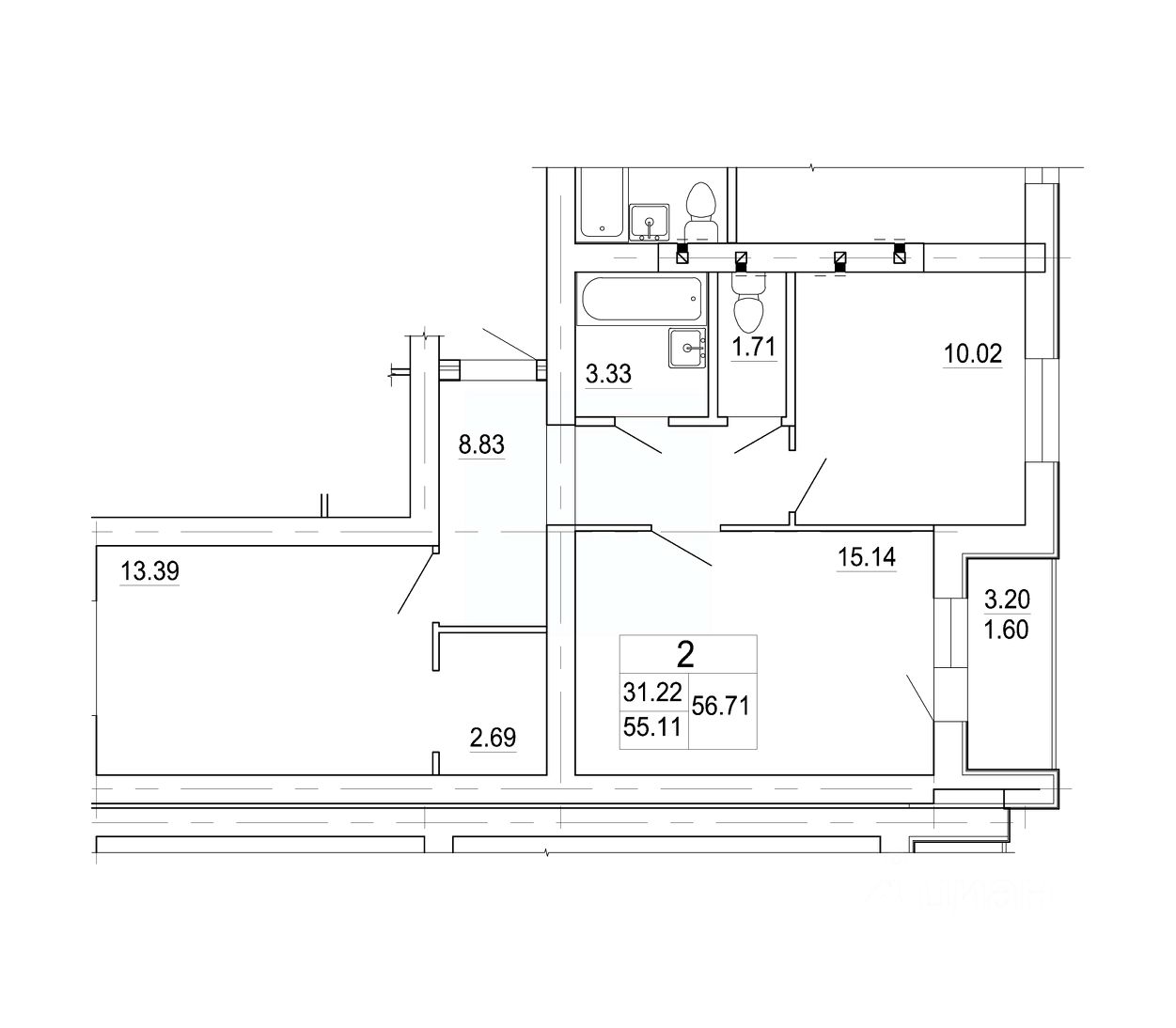 Продаётся 2-комнатная квартира в сданном доме (Корпус 2), срок сдачи: III-кв. 2024, общей площадью 56.71 кв.м., на 2 этаже. Новый жилой дом от застройщика "Промстроймонтаж" расположен по адресу: Россия, Ленинградская область, Гатчинский район, Коммунар, улица Строителей