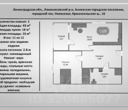 Высота потолков — 2.75 метра, что создает ощущение простора. До станции метро "Проспект Ветеранов" можно доехать на автомобиле всего за 22 минуты.