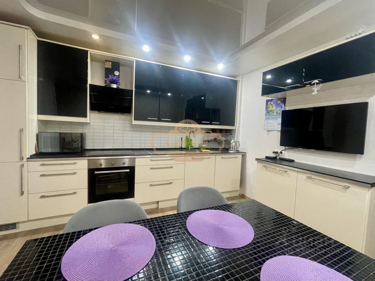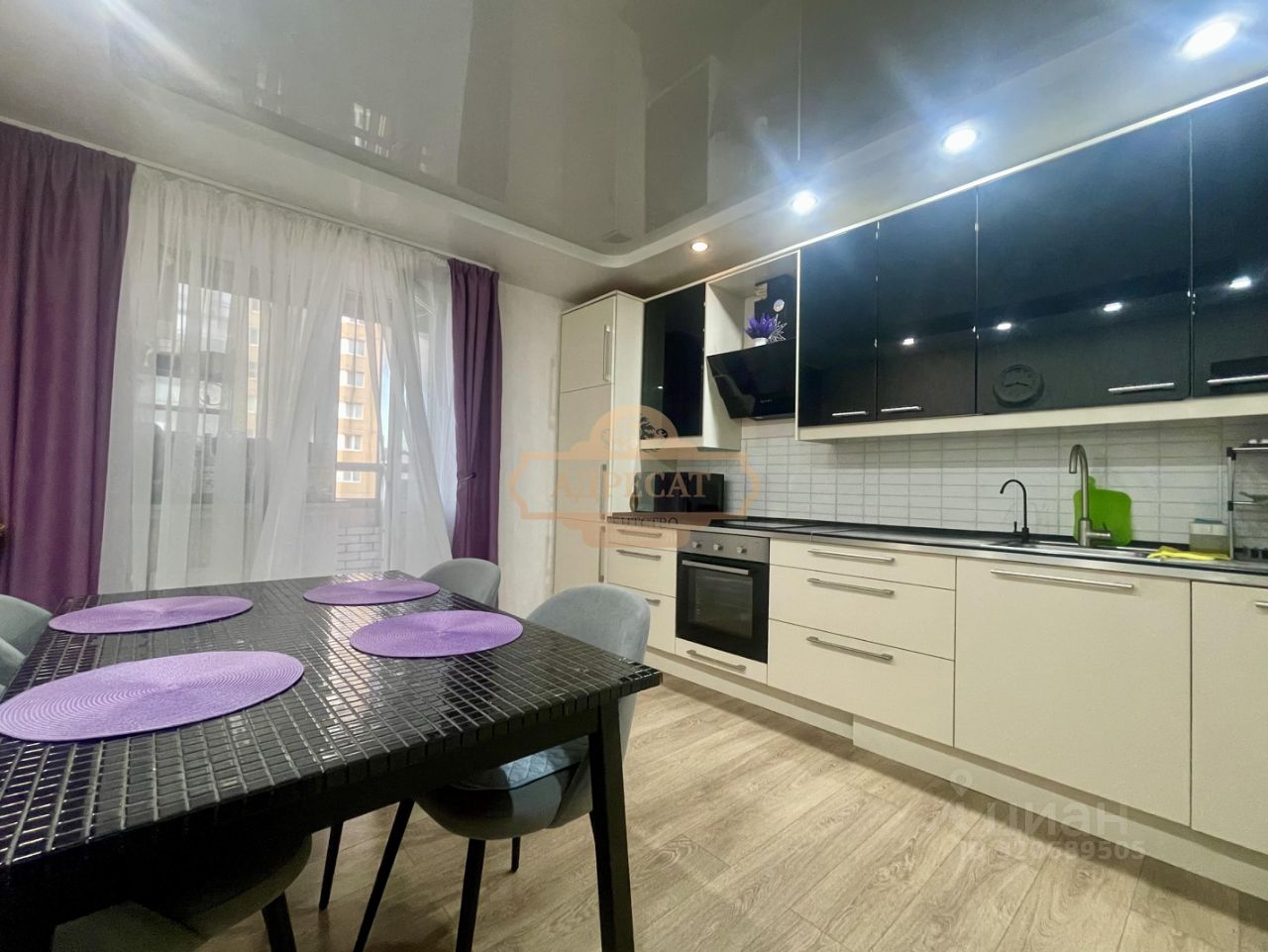 Просторная кухня 14.1кв.м с мебелью и техникой с выходом на застекленную лоджию 2.8кв.м.