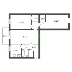 Просторные комнаты 11.4 м² + 10.7 м² + 18.3 м² = 40.4 м² общей площади