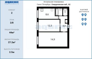 44 м²