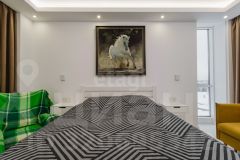 • Спальная комната (22 м²) с просторной гардеробной. Полы и межкомнатные двери выполнены из дуба.