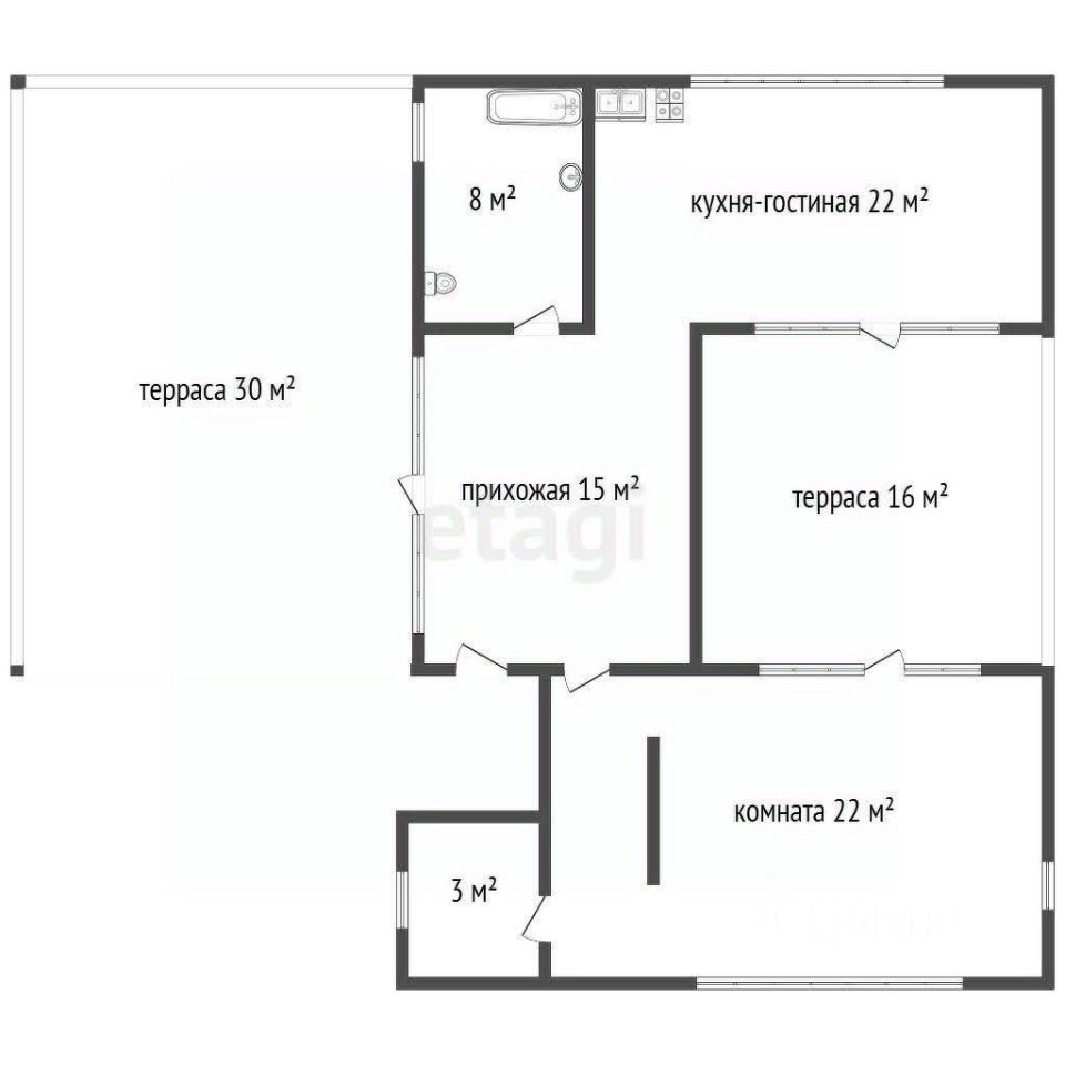 • Просторная терраса для отдыха (30 м²) и зона для барбекю (16 м²).