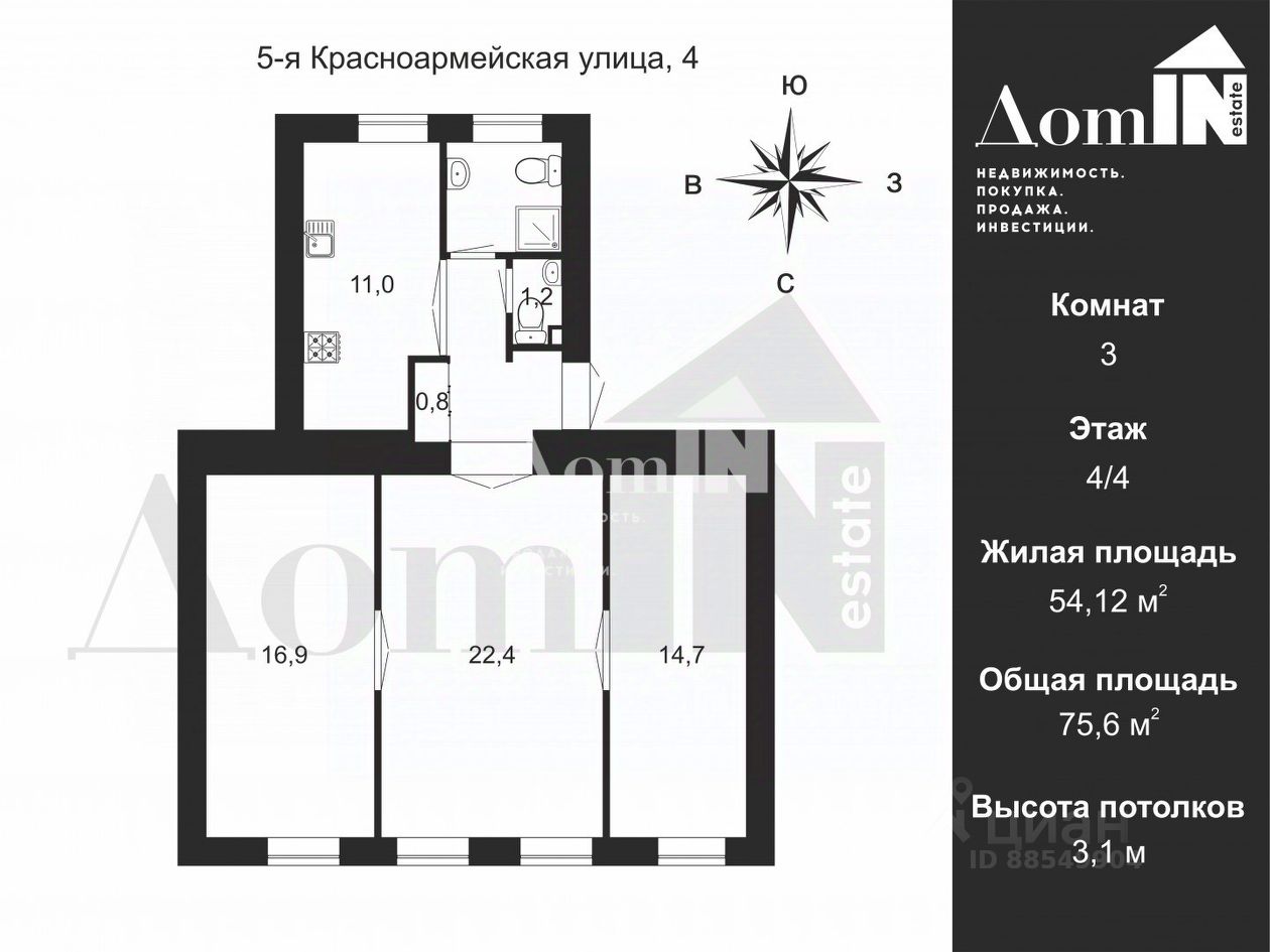 Арт. 113329599 Уютная, светлая трехкомнатная квартира с видом на крыши и дома Санкт-Петербурга, в шаговой доступности до станций метро " Технологический институт" и " Фрунзенская", ждёт своего покупателя!!!!