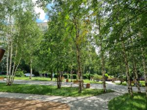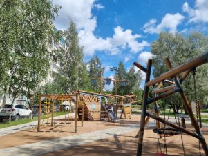 Во дворе расположена современная детская площадка, большая зеленая зона отдыха. Удобный выезд на КАД.