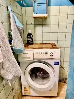 В соседних комнатах: в одной проживает собственник, в другой проживают русские арендаторы.