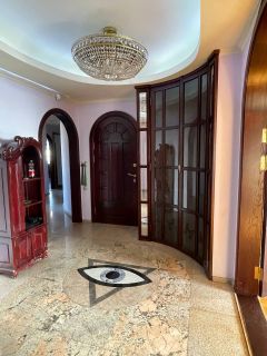 Кухня. Кухонный гарнитур из красного дерева, обеденный стол из массива природного камня, три стула. Техника: электроплита, встроенный холодильник, встроенная морозильная камера, посудомоечная машина, микроволновая печь. Кондиционер. Лоджия. Вид тихий двор.