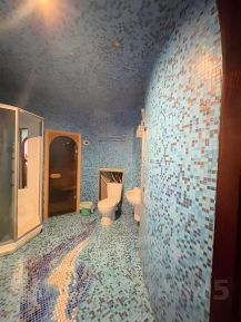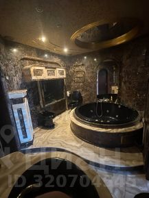 Ванная комната с джакузи, встроенным телевизором и санузлом, отделанная ониксом. Ванная джакузи из материла, который максимально долго сохраняет тепло воды.
