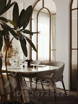 Квартира отличается продуманной планировкой: три изолированные спальни, большая гостиная с арочными стеклянными перегородками, кухня и столовая с кладовой для хранения продуктов.