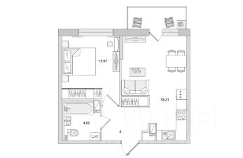 Продается однокомнатная квратира (2евро с большой кухней) по переуступке в жк черная речка