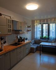 Кухонный гарнитур с техникой bosch, встроенная посудомоечная машина. Освещение в санузлах и гардеробной с датчиками движения. Видеодомофон. Мебель практически новая.