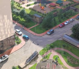 Школа большая со своим стадионом и детские сады (частный и городской) - в 50-100 метрах от дома (видны на ыото из окна). Во дворе детская площадка.