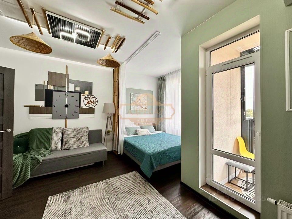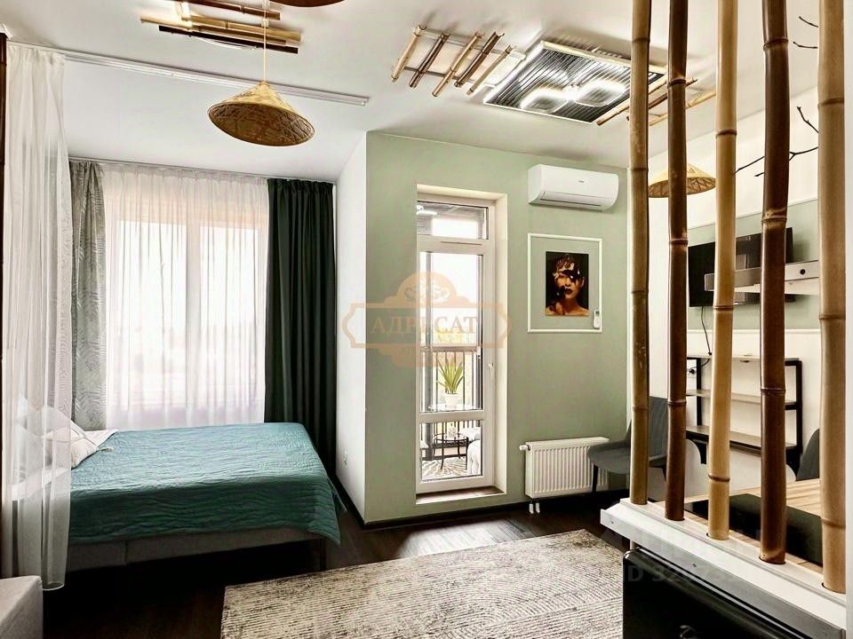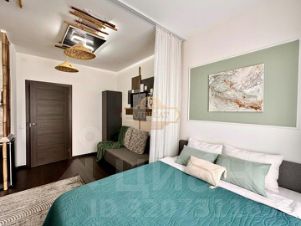 О квартире: общ площадь 24 кв.м, площадь комнаты с кухней 17,7 кв.м., совмещенный санузел 3,1 кв. м., прихожая 3,0 кв. м., лоджия 2,6 кв.м. Высота потолка 2,75 м. Квартира расположена на 8 этаже 11-этажного дома.