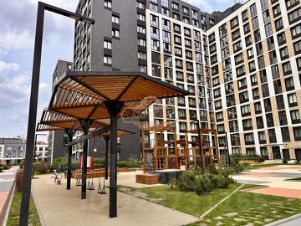 О доме: здание 2022 г., грузовой и пассажирский лифты. Внутренняя территория ЖК полностью огорожена по периметру. Входы во двор и парадную оборудованы видеодомофонами, установлена круглосуточная система видеонаблюдения по периметру, на детских площадках, въездах в паркинг, на первых этажах и в лифтах. Предусмотрена парковка для велосипедов. Дворы свободны от машин, предусмотрен подземный паркинг на 672 м/места, есть наземная закрытая парковка. На первом этаже - просторная колясочная.