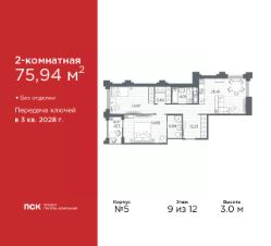 Просторная 2-комн. квартира в Клубный квартал "Ассамблея" на 9 этаже. Квартира без отделки, после оформления собственности можно делать ремонт. Общая площадь: 75.94 кв.м., жилая: 29.72 кв.м., площадь просторной кухни-столовой: 20.41 кв.м. Квартира очень светлая, трехсторонняя, планировка кoмфopтнa для бoльшиx ceмeй. В квартире одна лоджия, два совмещенных санузла. Высота потолков 3.0 м.