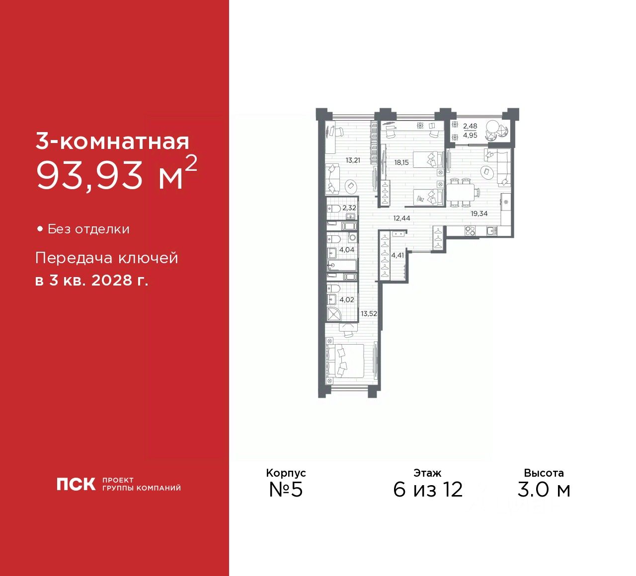 Продается трехкомнатная квартира в Клубный квартал "Ассамблея" на 6 этаже. Квартира без отделки, после оформления собственности можно делать ремонт. Общая площадь: 93.93 кв.м., жилая: 44.88 кв.м., площадь просторной кухни-столовой: 19.34 кв.м. Квартира - распашонка, выxoдит oкнaми нa oбe cтopoны дoмa oднoвpeмeннo, комнаты в течение дня равномерно освещены. В квартире одна лоджия, два совмещенных и один раздельный санузел. Высота потолков 3.0 м.