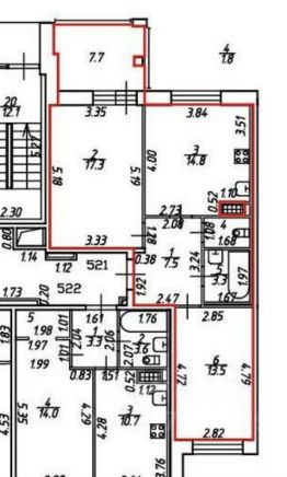 Все комнаты правильной геометрии 17,3 + 13,5 кв. м.