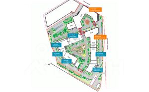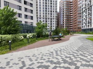 Территория комплекса благоустроена. В рамках социальной программы в комплексе есть медицинский кабинет. На придомовой территории расположены детские и спортивные площадки, проведено озеленение.