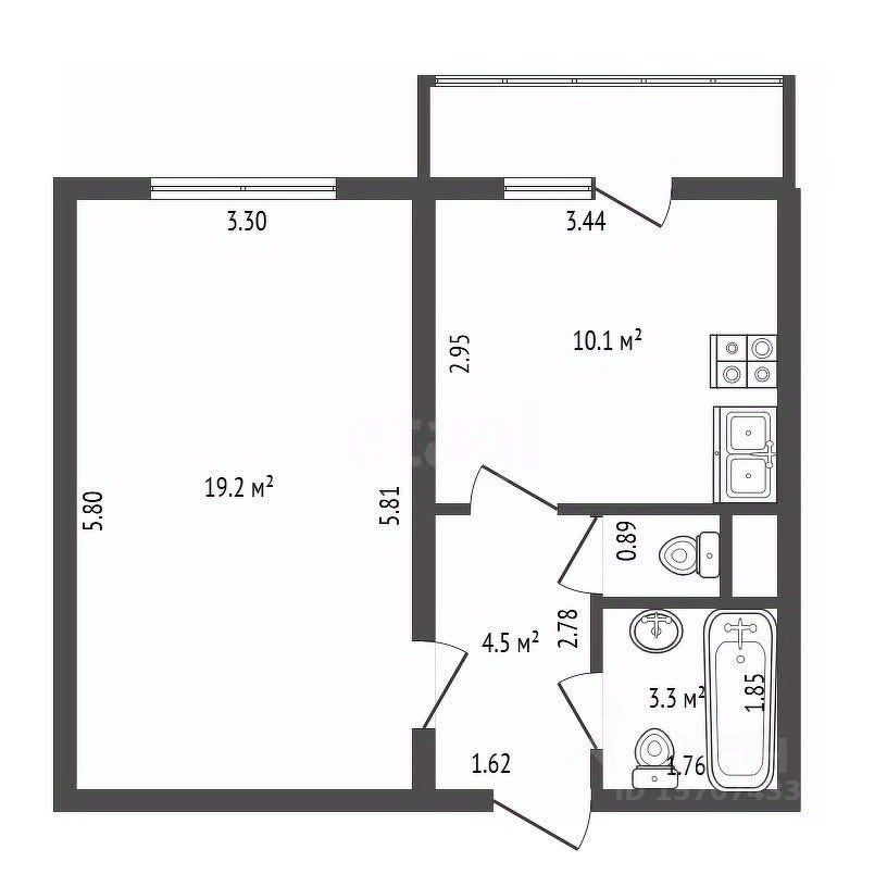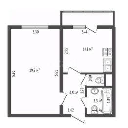 Просторные помещения кухня 10.1 м² + комната 18.7 м²