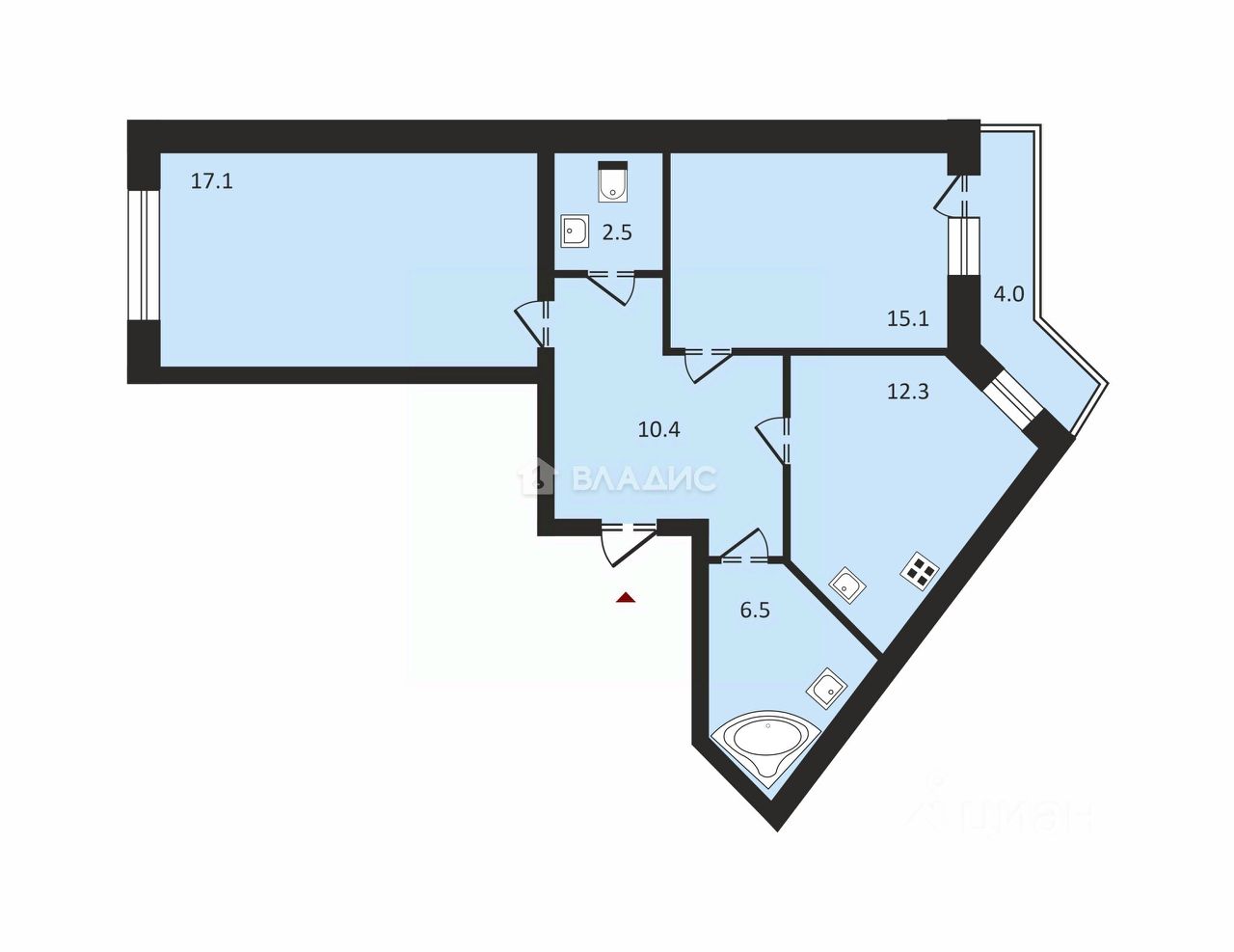 Общая площадь квартиры составляет 63,9 кв. м. Жилая площадь — 32,2 кв. м, площадь кухни — 12,3 кв. м. В квартире два санузла раздельный и один совмещённый, а также лоджия. Евроремонт, всё готово для комфортного проживания.