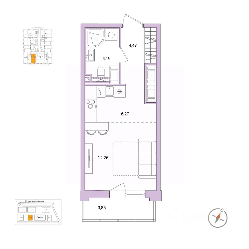 Общая площадь28,35 м²