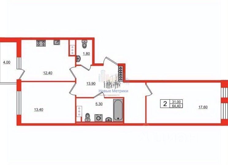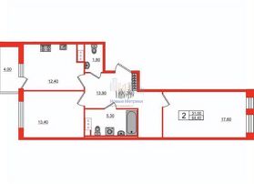 • Общая площадь: 64,4 кв.м. + балкон 4,0 кв.м.