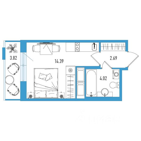 Продаётся студия в строящемся доме (Дом 1), срок сдачи: II-кв. 2027, общей площадью 22.25 кв.м., на 10 этаже.