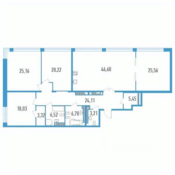 Продаётся 4-комнатная квартира в строящемся доме (Дом 1), срок сдачи: IV-кв. 2025, общей площадью 181.6 кв.м., на 18 этаже.