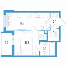 Продаётся 1-комнатная квартира в сданном доме (Старорусский пр-т, 3к2 (Дом 1)), срок сдачи: II-кв. 2025, общей площадью 31.9 кв.м., на 2 этаже.