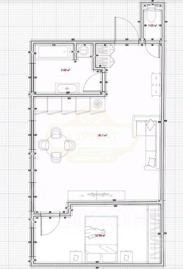 Общая площадь квартиры - 50 кв. м., пространство объединено и удачно зонировано.