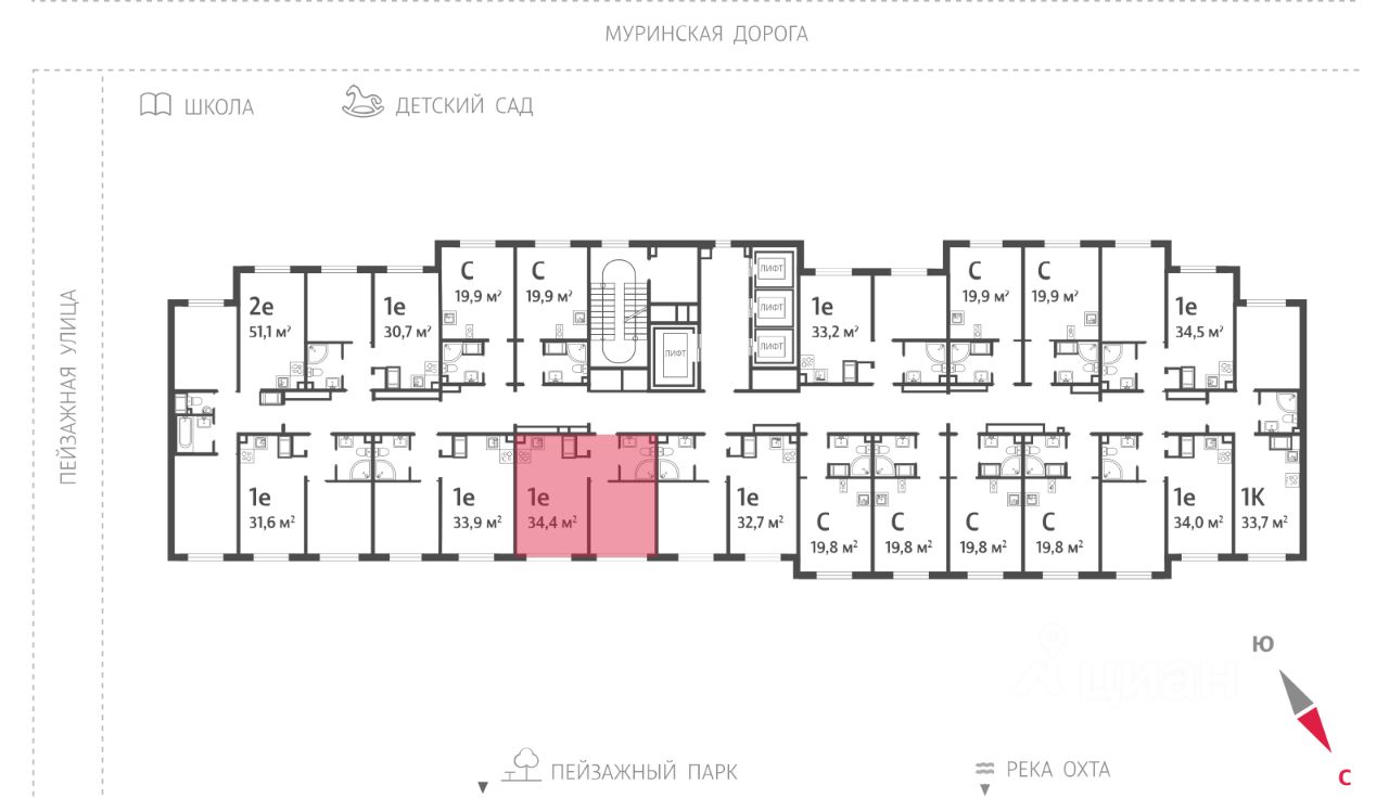 Вдоль леса и рядом с рекой Охта. К 2026 году на берегах реки Охты будет создан Пейзажный парк с летними экотропами и зимними горками для тюбингов, скейт-парком и летним кинотеатром.