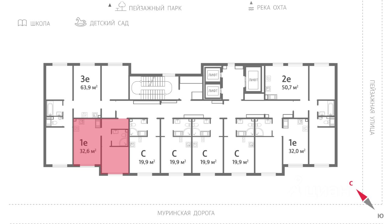 Вдоль леса и рядом с рекой Охта. К 2026 году на берегах реки Охты будет создан Пейзажный парк с летними экотропами и зимними горками для тюбингов, скейт-парком и летним кинотеатром.