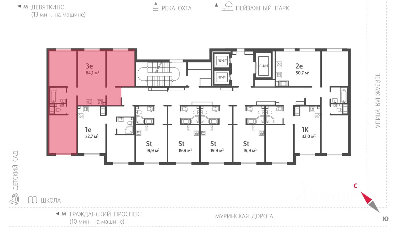• 20 минут на авто до станций "Гражданский проспект" и "Академическая";