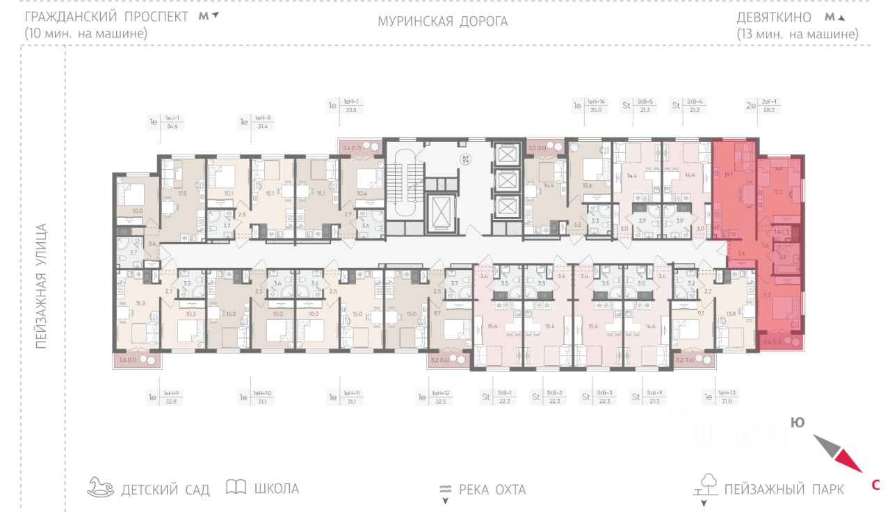 • 20 минут на авто до станций "Гражданский проспект" и "Академическая";