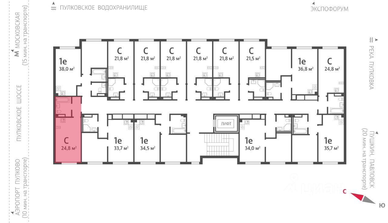 Продается студия в ЖК "Пулково Лейк" на 2 этаже. Общая площадь составляет 24.80 кв. м. Квартира с чистовой отделкой. Жилой комплекс "Пулково Лейк" располагается по адресу Санкт-Петербург, Московский.