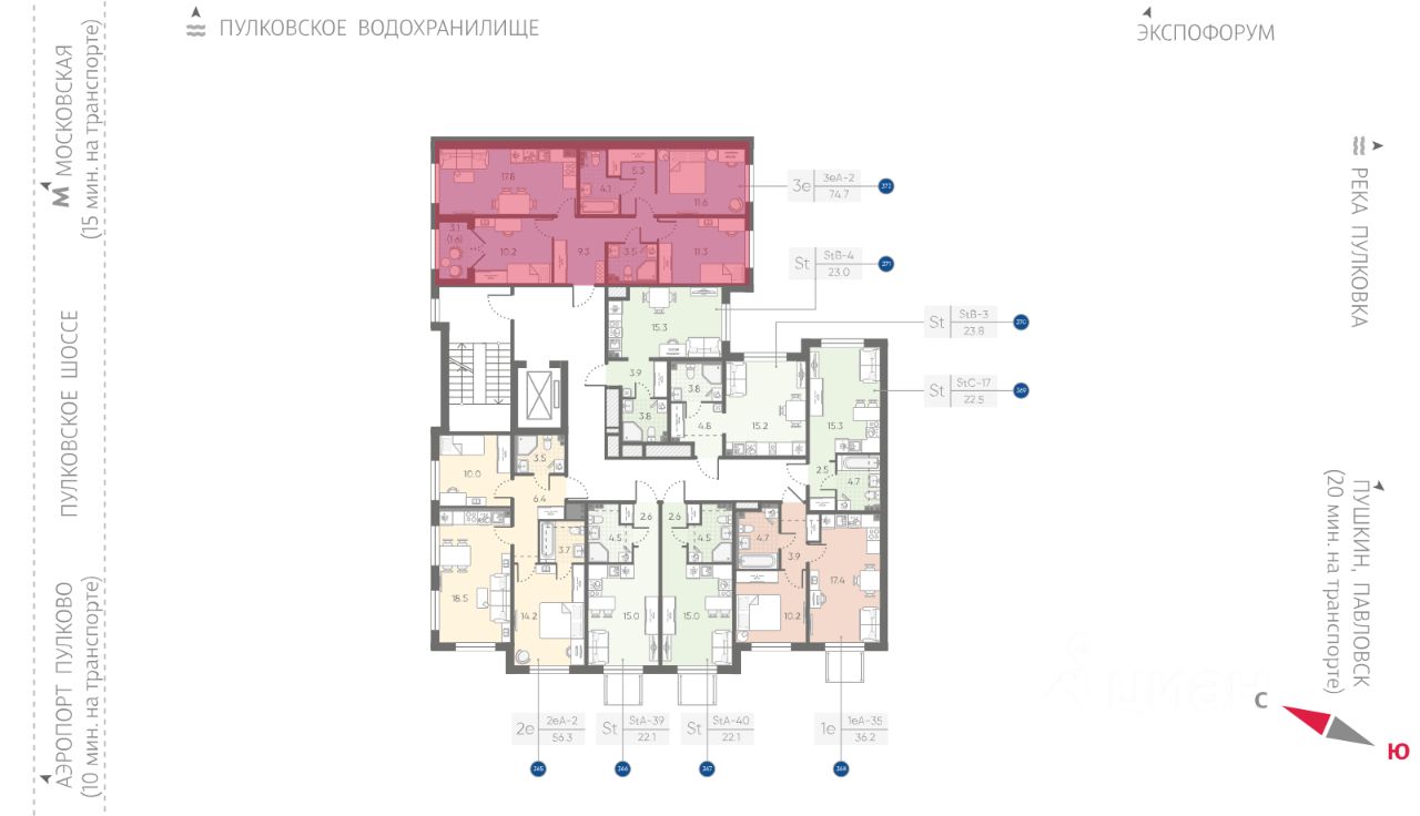 Дома высотой всего 4 этажа, квартиры от уютных студий до трехкомнатных квартир для большой семьи. Широчайший выбор планировок, включая квартиры с мастер-спальнями, патио, каминами, саунами, двухуровневые квартиры. Школа, детские сады, парк на берегу озера и выезды на Пулковское и Петербургское шоссе.