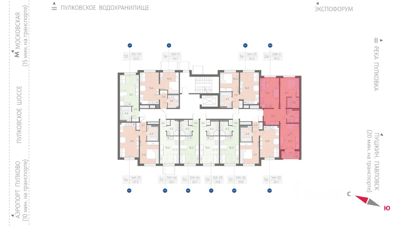 Дома высотой всего 4 этажа, квартиры от уютных студий до трехкомнатных квартир для большой семьи. Широчайший выбор планировок, включая квартиры с мастер-спальнями, патио, каминами, саунами, двухуровневые квартиры. Школа, детские сады, парк на берегу озера и выезды на Пулковское и Петербургское шоссе.