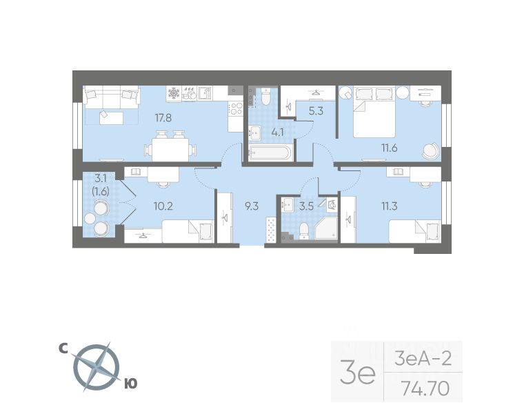 Продается 3-комнатная квартира в ЖК "Пулково Лейк" на 2 этаже. Общая площадь составляет 74.70 кв. м. Квартира с чистовой отделкой. Жилой комплекс "Пулково Лейк" располагается по адресу Санкт-Петербург, Московский.